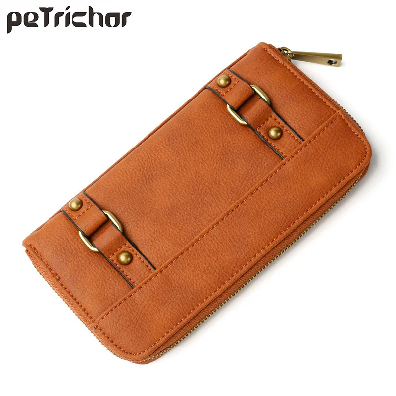 Винтаж Для женщин кошельки из искусственной кожи Длинный кошелек на молнии для дамы сотовый телефон отделение для монет фирменный дизайн ж...