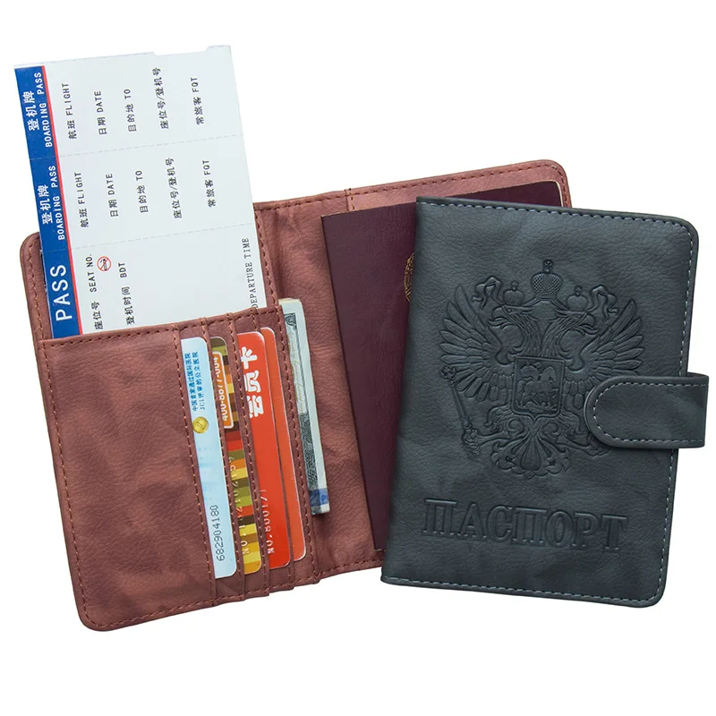 Русский мягкий черный двуглавый орел Цвет смешивания Пряжка Обложка для паспорта встроенный RFID блокировки защиты личной информации