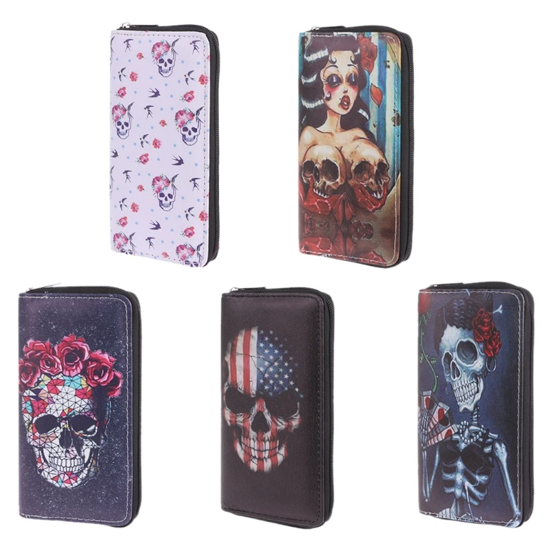 Винтаж череп дамы долго сумки молнии бумажник кошелек со скелетом клатч держатель для карт кошелек Carteira Feminina PA678051