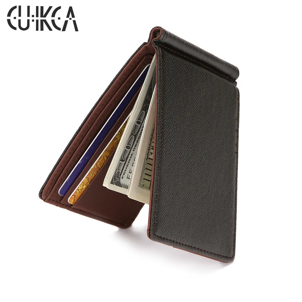 CUIKCA Южная Корея Стиль Зажимы для денег Бизнес ID футляры для кредитных карт унисекс мини кошелек Тонкий кожаный бумажник сплошной цвет