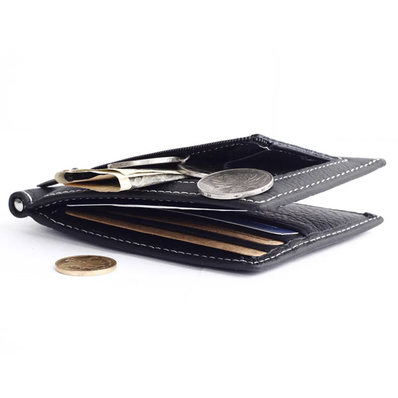 Натуральная кожа деньги зажим-держатель бренд мода мини мужчины молния монета карман мульти-карта бит портфель кошелек Тонкий Кредитная ка...