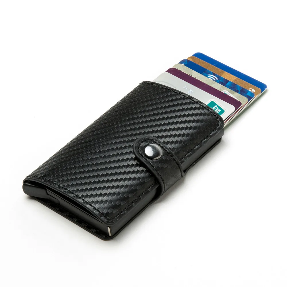 RFID Блокировка из искусственной кожи держатель для карт мужской кошелек RFID мужской кредитный держатель для карт кошелек автоматический Бизнес ID карта алюминиевый кошелек