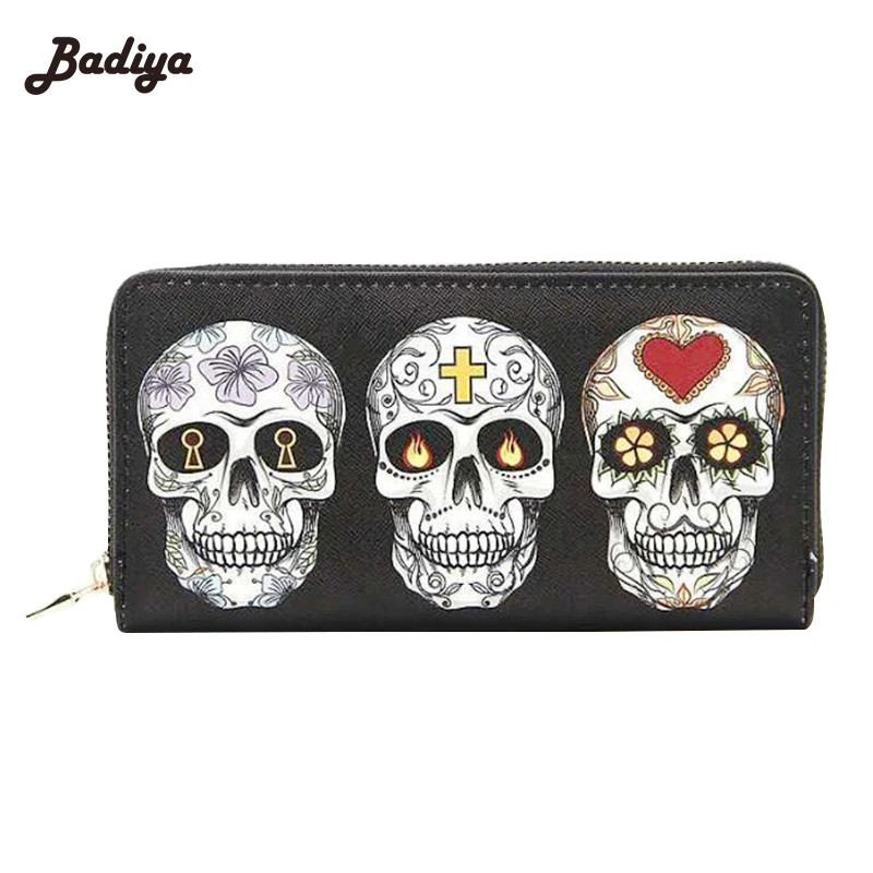 Череп выражение печати Для женщин кошелек на молнии дизайн кошелек для женская обувь из искусственной кожи женские телефон визитница