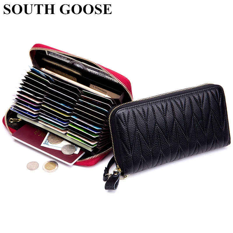 Фирменная Новинка для женщин кожа длинные молнии Держатель для карт женские кошельки RFID женский пояса из натуральной кожи наручные клатч