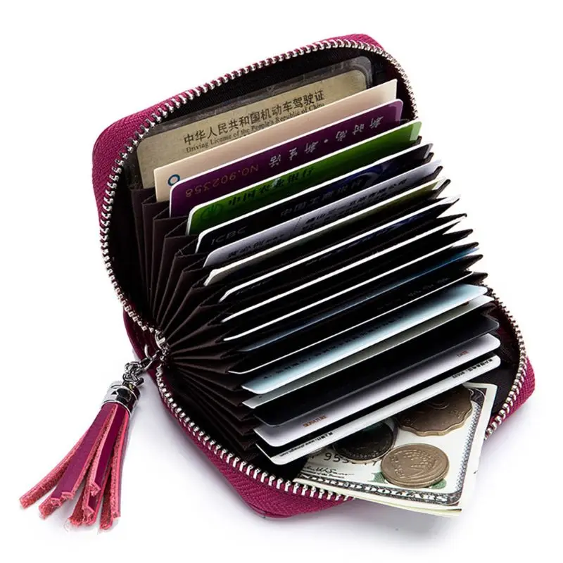 Для Женщин Девочек держатель для карт чехол кожаный бумажник RFID Блокировка Кошелек с кисточкой молнии монета сумка 517D