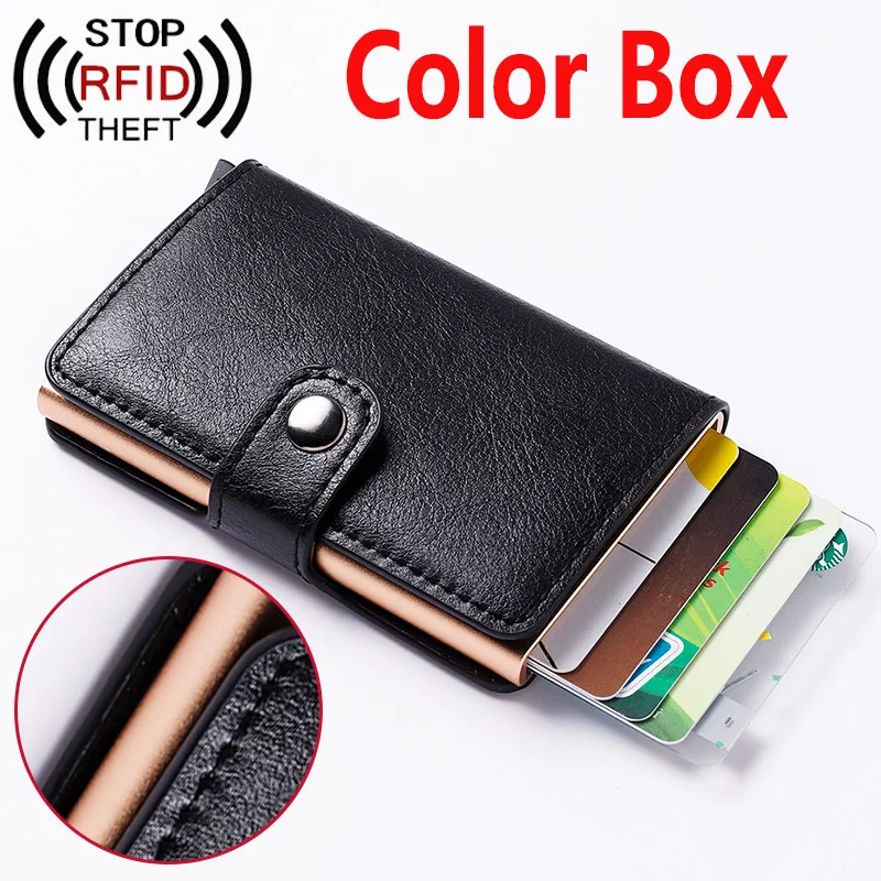 Цветная коробка для мужчин, кредитный держатель для карт, RFID Блокировка из искусственной кожи, автоматический Бизнес ID держатель для карт, алюминиевый мужской кошелек