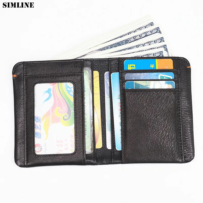 100% мужской кошелек из натуральной кожи, винтажный, мягкий, Воловья кожа, короткие, маленькие, тонкие, Двойные кошельки, кошелек с ID, держатель...
