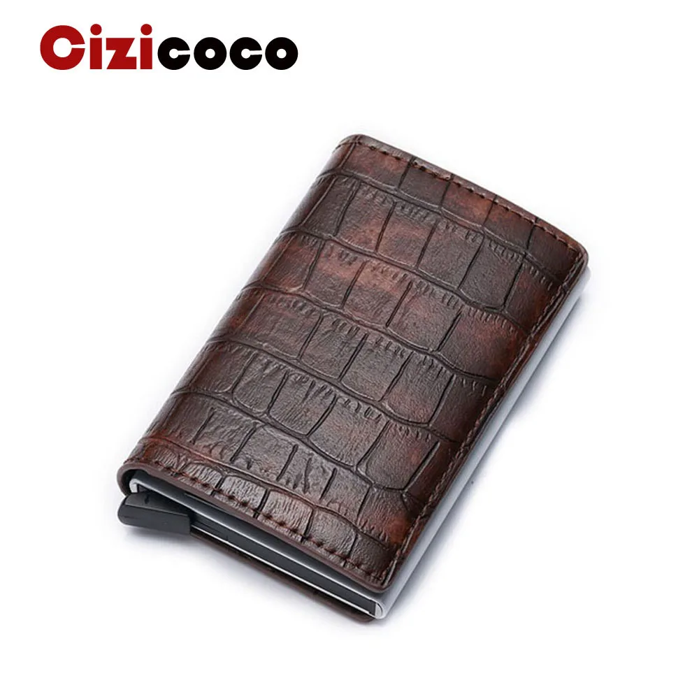 Новый Противоугонный мужской держатель для кредитных карт RFID алюминиевый держатель для визиток Crazy Horse PU кожаный женский мини-кошелек