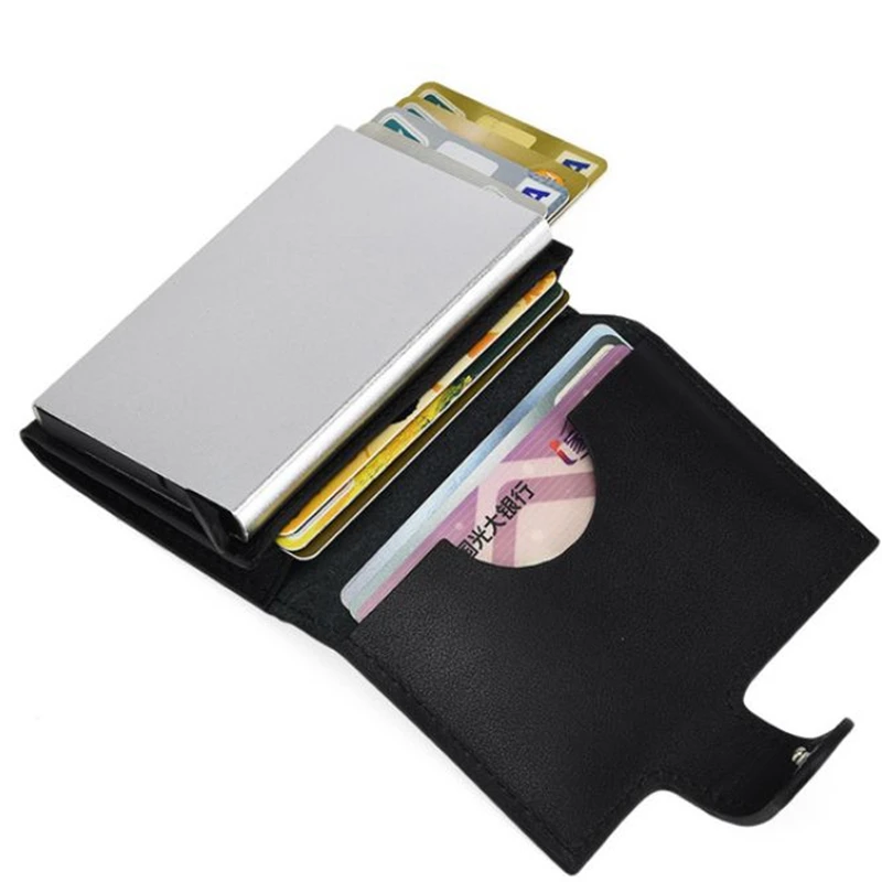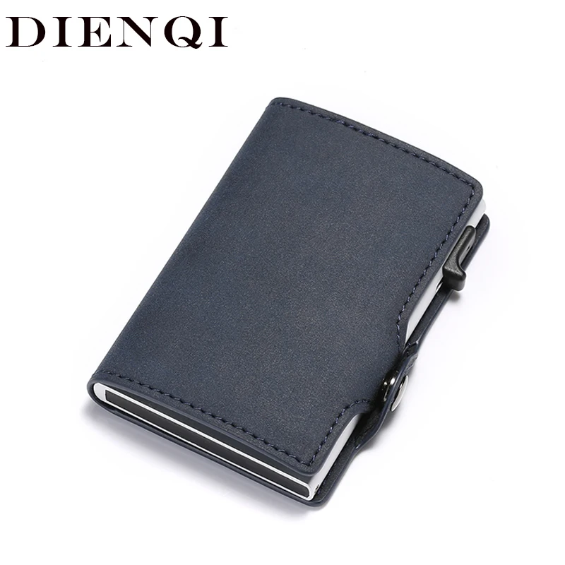 DIENQI анти кредитная карта, RFID держатель чехол для мужчин слайдер кожаный id держатель карты банк Алюминиевый металлический кошелек кредитниц...