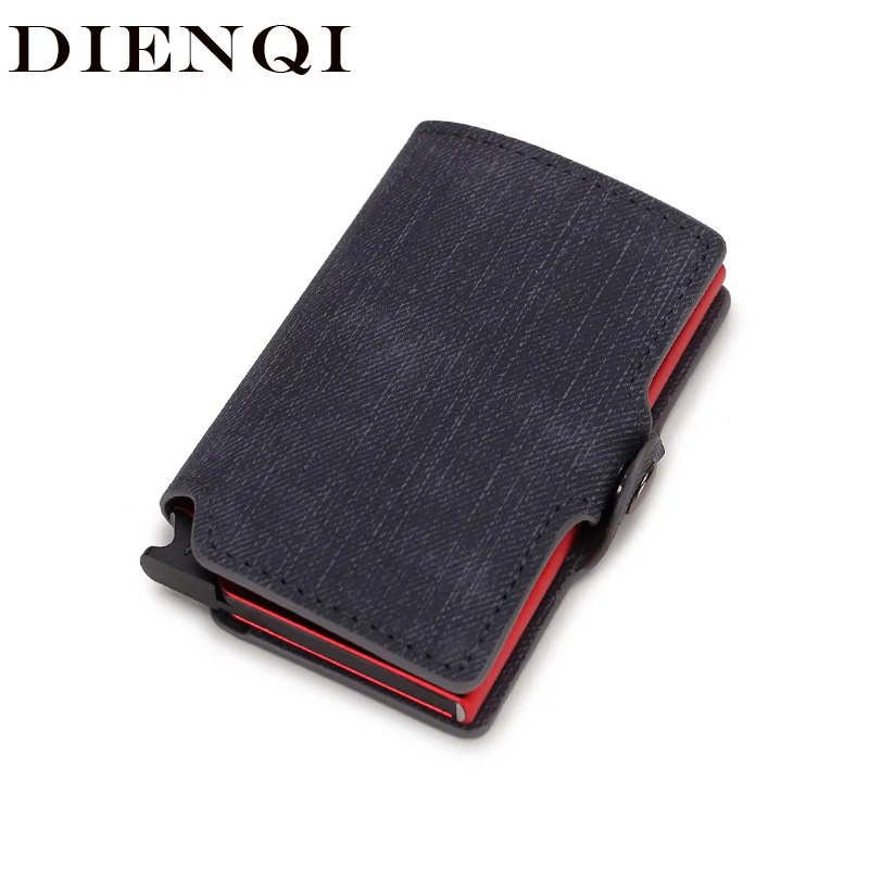 DIENQI карбоновая волоконная карта Держатели кошельки мужские брендовые кожаные мини тонкий кошелек для денег металлический RFID женский тонки...