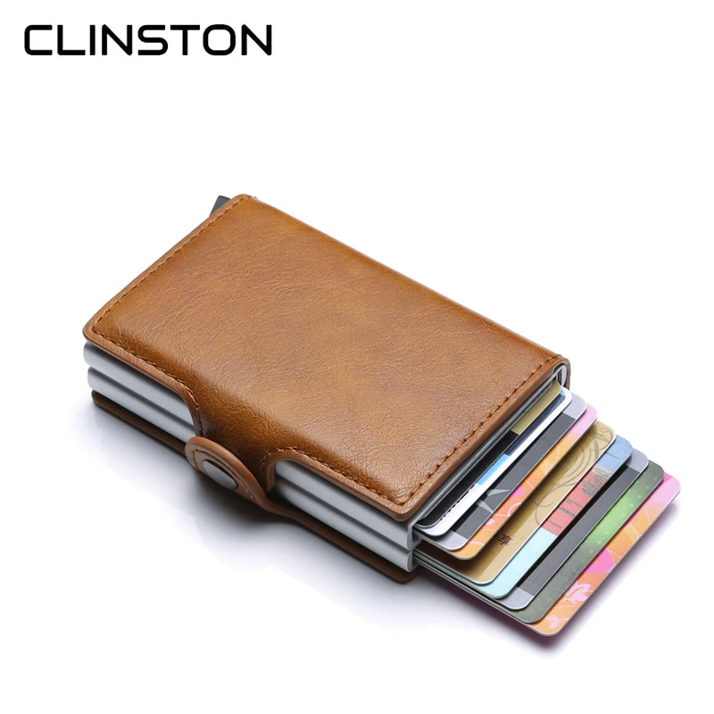 RFID для мужчин кожа ID кредитной держатель для карт мужской автоматический алюминий сплав Hasp бизнес двойной слои визитница бумажник для чело...