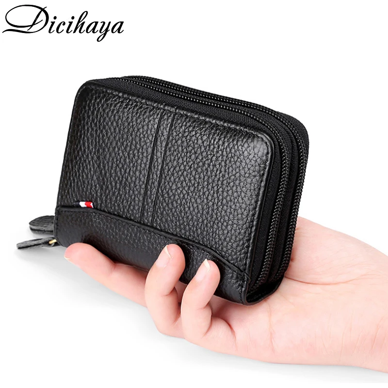 DICIHAYA мужские кошельки из натуральной кожи с двойной молнией, кошелек для карт, маленький кошелек для мужчин, кошелек для мужчин, черный кофе, Carteira, держатель для карт