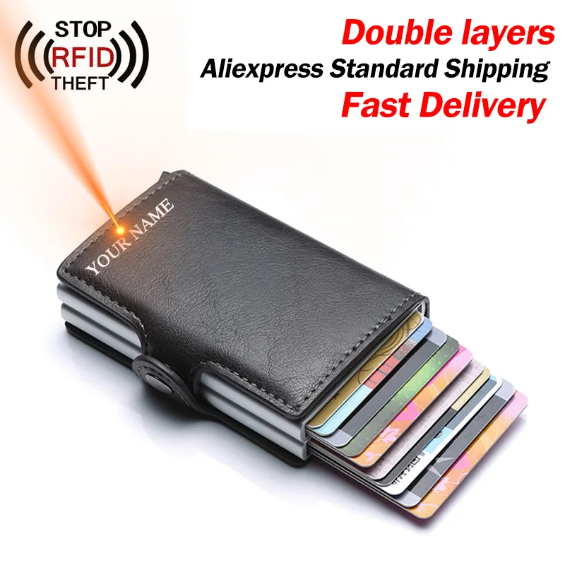 BISI GORO на две карты Кошелек Алюминиевый RFID блокирующий металлический женский держатель для карт чехол для кредитных карт для женщин и мужчин...