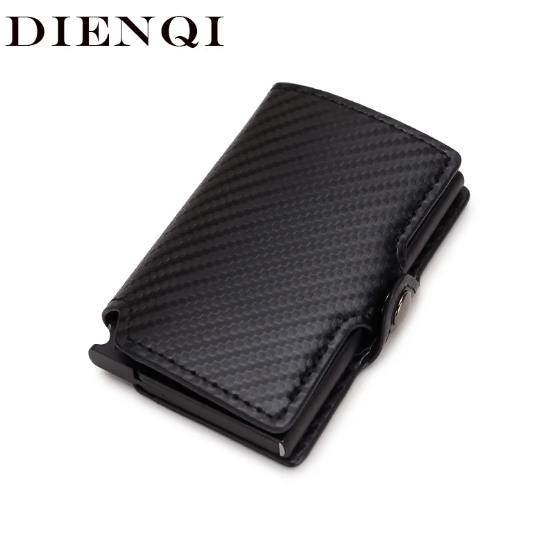 DIENQI Противоугонный Мужской винтажный ID держатель для кредитных карт блокирующий Rfid кошелек из углеродного волокна безопасности алюминиев...