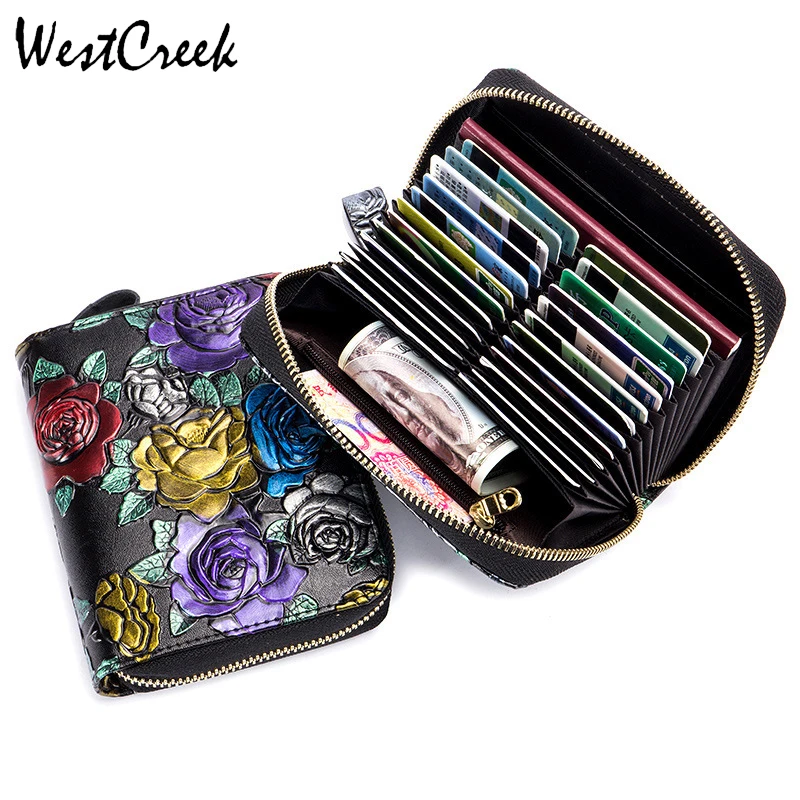 Брендовый женский кожаный RFID кошелек на молнии, кредитный держатель для карт, органайзер с тиснением розы, чехол для паспорта, визиток, кошельки для путешествий