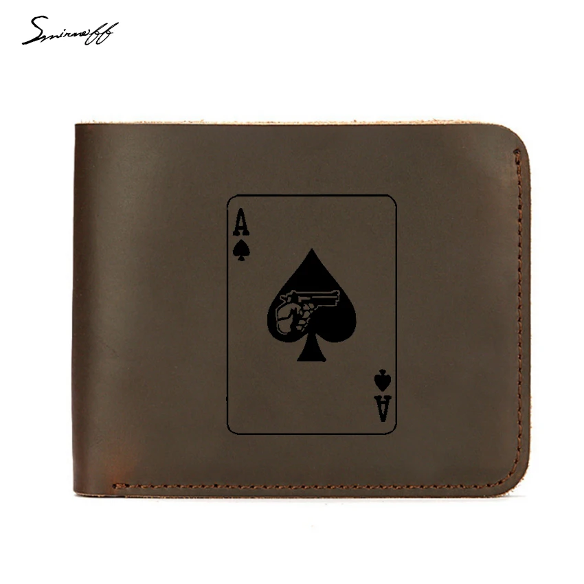 Персональный покерный кошелек для карт, маленький кошелек из натуральной кожи, тонкие держатели для карт, короткий кошелек, выгравированны...