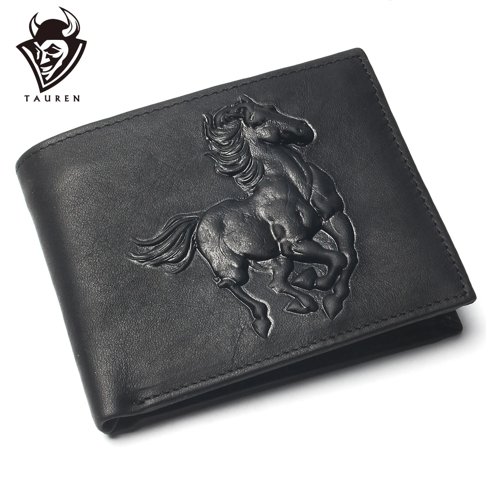 Мужской короткий кошелек с узором в виде лошади, чистый черный цвет, дешевый кошелек из 100% натуральной кожи, мужской кошелек для мелочи держ...