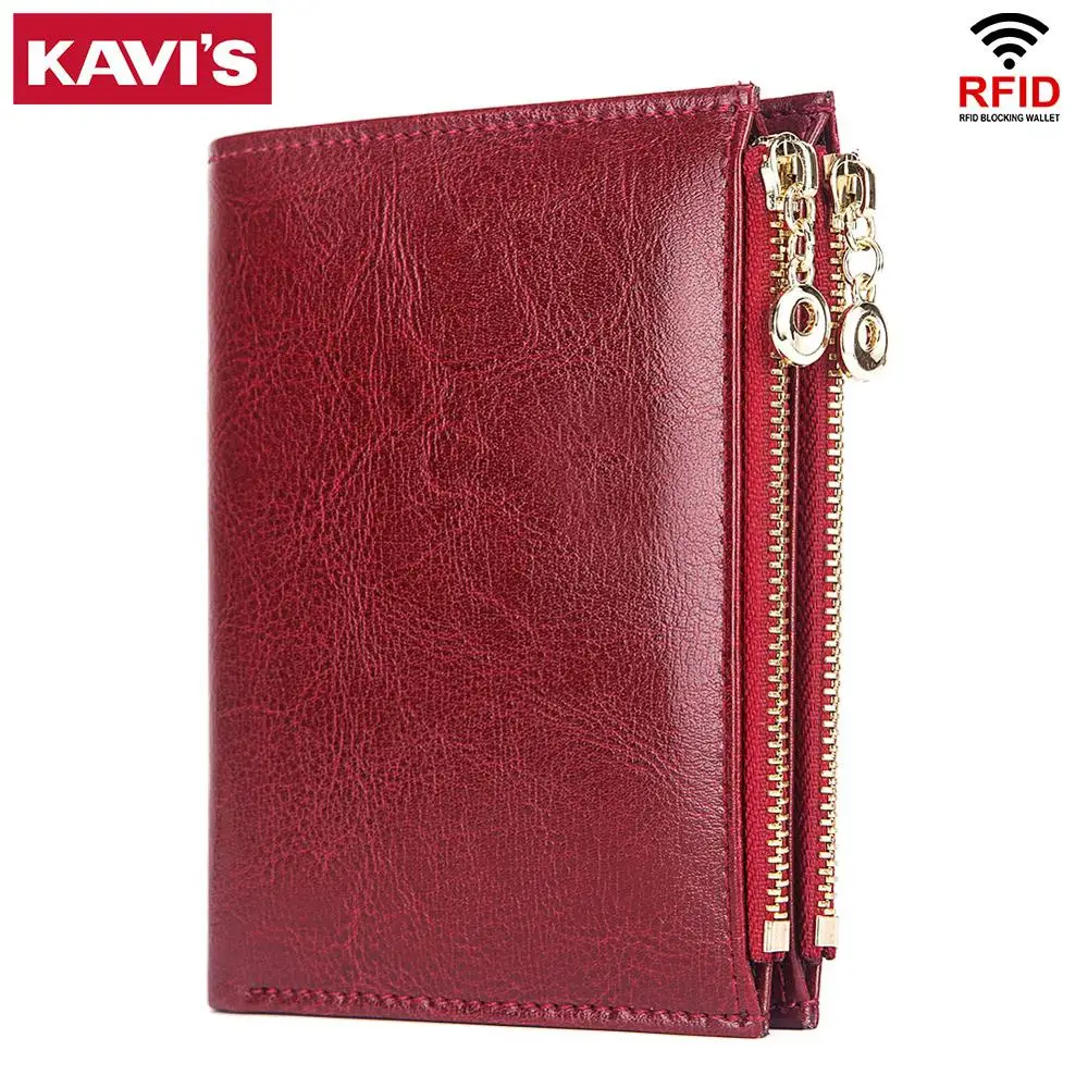 KAVIS/100% Женский кошелек из натуральной кожи, Женский кошелек Walet Portomonee Rfid, брендовая сумка для денег, волшебный кошелек на молнии для монет для...