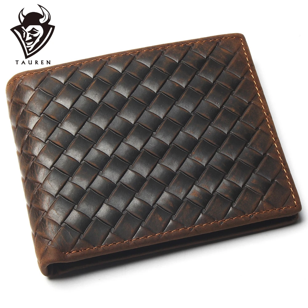 Кошелек из натуральной кожи с отделением для карт, кредитная карта Crazy Horse, мужской тканый узор, стильный и модный кожаный кошелек для монет