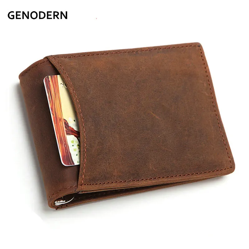 GENODERN Для мужчин RFID Блокировка зажим для денег Crazy Horse кожа металлический зажим кошелек Ultra Slim Мужской кошелек минималистский кошелек