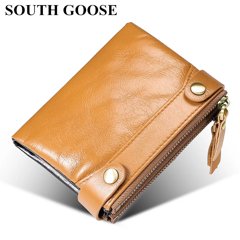 Лидер продаж, мужской кошелек из натуральной кожи, короткий кошелек для монет, мужской маленький винтажный кошелек на двойной молнии, RFID бло...