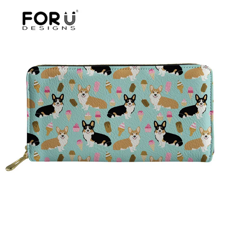 FORUDESIGNS корги собак с цветочным принтом дамы кошелек из искусственной кожи милые Для женщин кошелек для монет ID держатель для карт телефон Су...