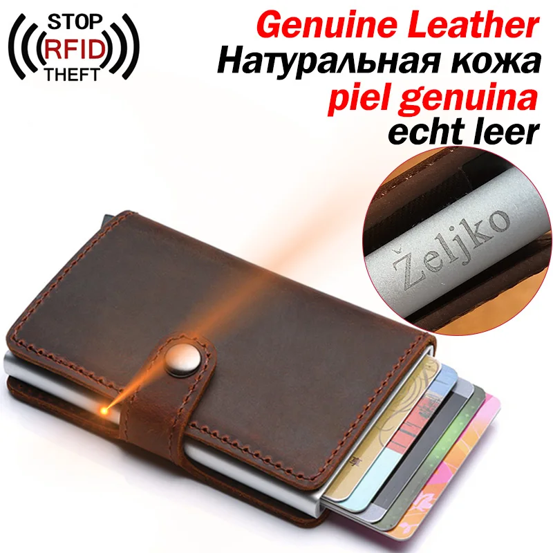 Натуральная кожа мужской кредитный держатель для Карт RFID Блокировка Мужской кошелек ID держатель для карт Банк бизнес кошельки Кошелек для ...