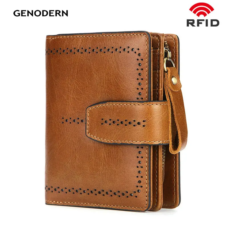 GENODERN RFID Модный женский кошелек из натуральной кожи с кошельком для монет женские кошельки женский бумажник короткий кошелек для леди