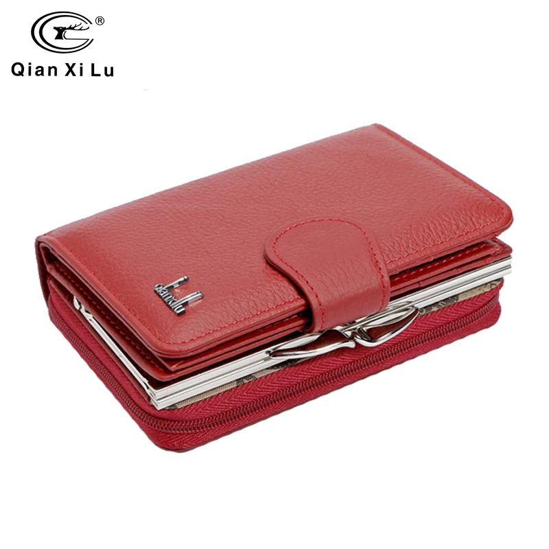 Qianxilu 2017 новые Брендовые женские кошельки из воловьей кожи на молнии и застежке, кошельки для монет, женские кошельки, высокое качество, подарок