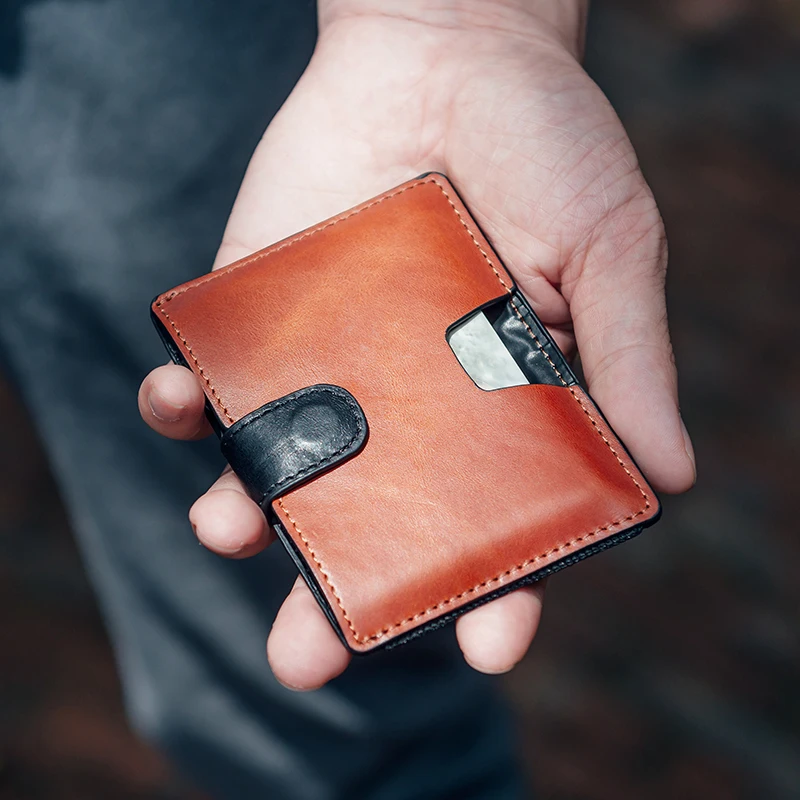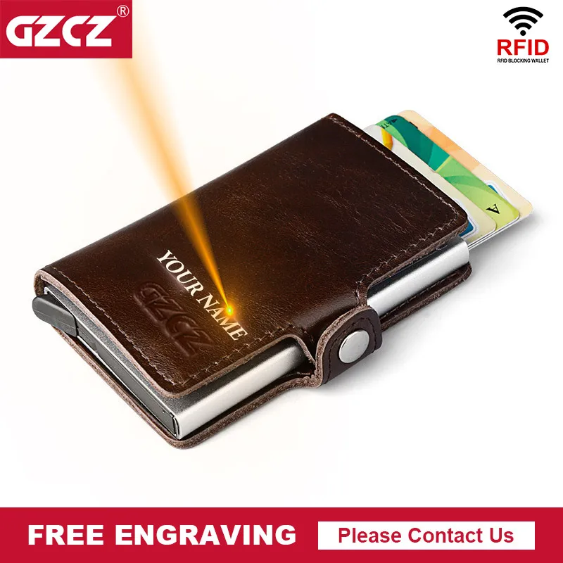 GZCZ натуральная кожа мужской алюминиевый кошелёк задний карман ID держатель для карт RFID Блокировка мини волшебный кошелек автоматический Ко...