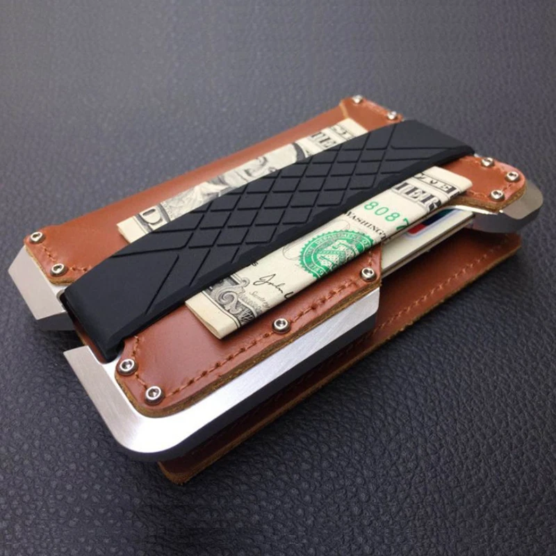 Алюминиевый сплав ID визитницы из натуральной кожи бумажник для карт чехол для кредитных карт тонкий мужские кошельки Мини дорожный кошелек...
