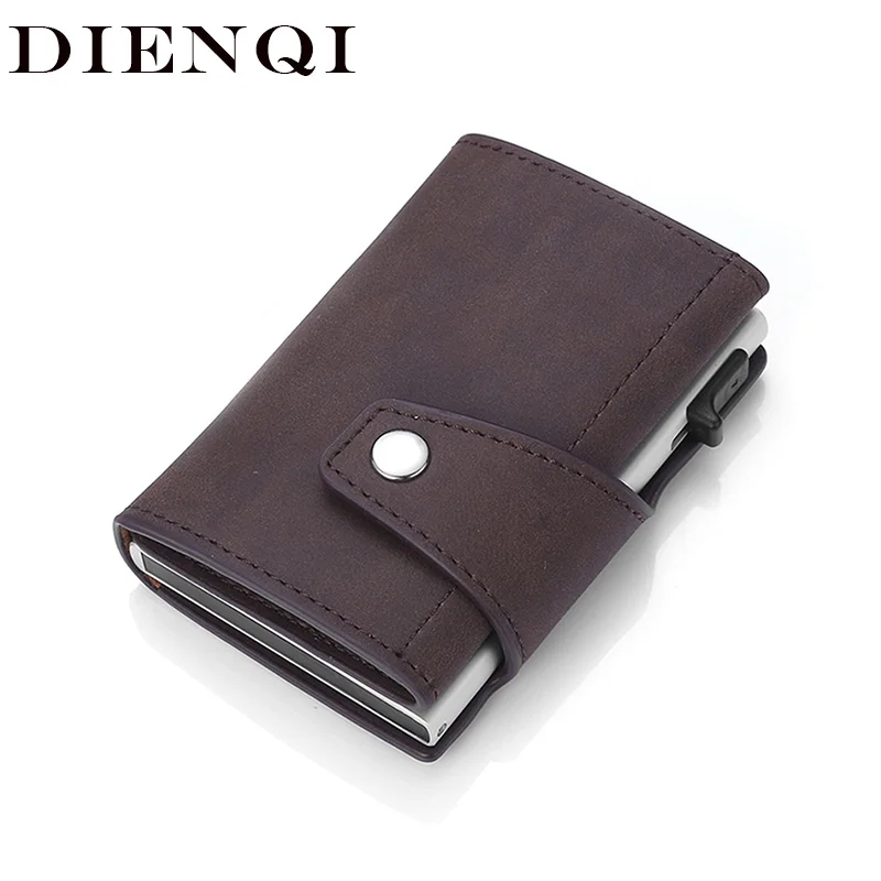 Держатель для карт DIENQI, из натуральной кожи, с защитой от радиочастотной идентификации