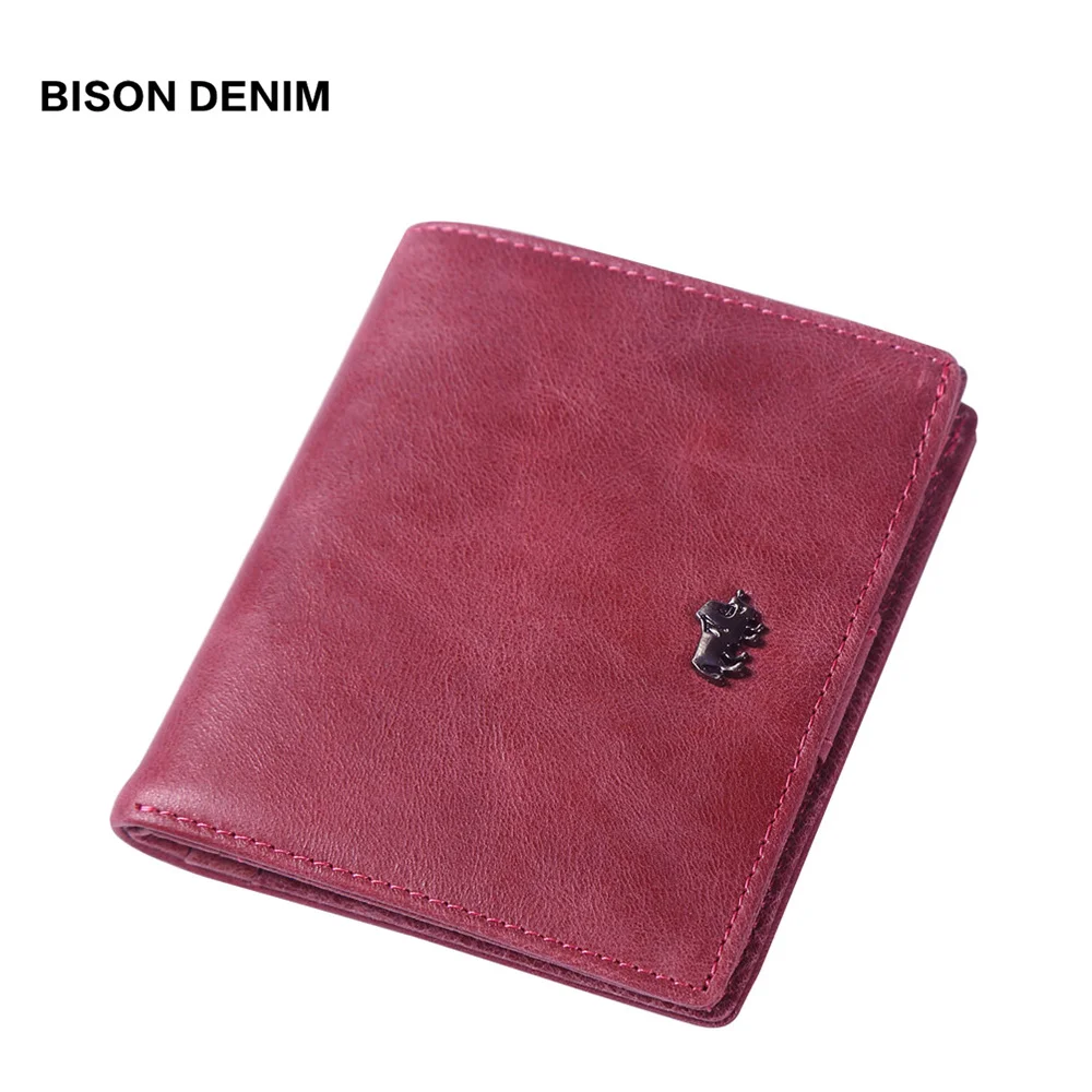 BISON DENIM 2018 Роскошные брендовые кошельки дизайнерские женские натуральная компактный кожаный бумажник на молнии для монет женские кожаные к...