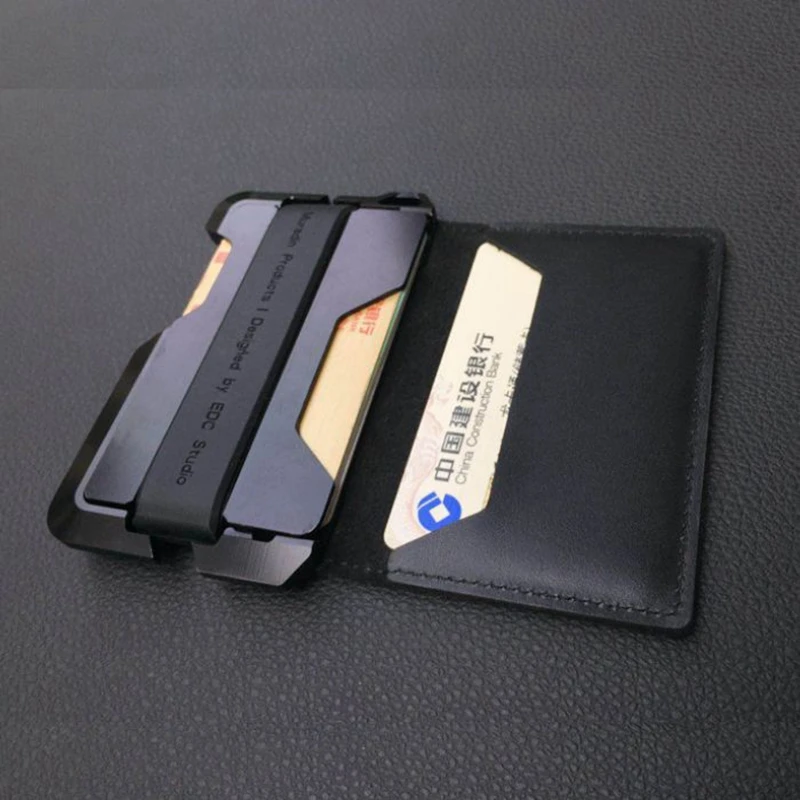 Новый дизайн Алюминиевый металлический RFID блокирующий держатель для кредитных карт из натуральной кожи минималистичный кошелек для карт д...