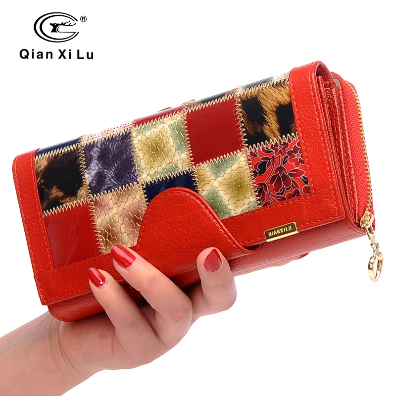 Qianxilu бренд 3 сложения натуральная кожа женские кошельки с карманом для монет женский клатч дорожный кошелек Portefeuille femme cuir