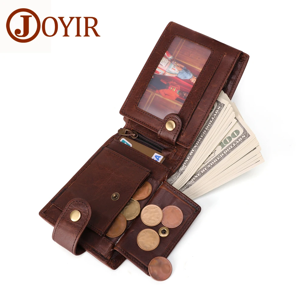 Мужской кожаный кошелек JOYIR Crazy Horse, винтажный короткий кошелек из натуральной кожи с отделением для монет, RFID, держатель для банковских карт