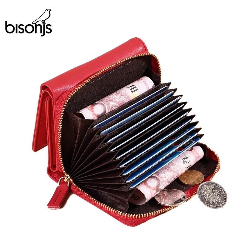BISON деним коровья кожа женские кошельки ID Футляр для карт, Дамский кошелек на молнии карман для монет короткие маленькие кошельки высокого к...