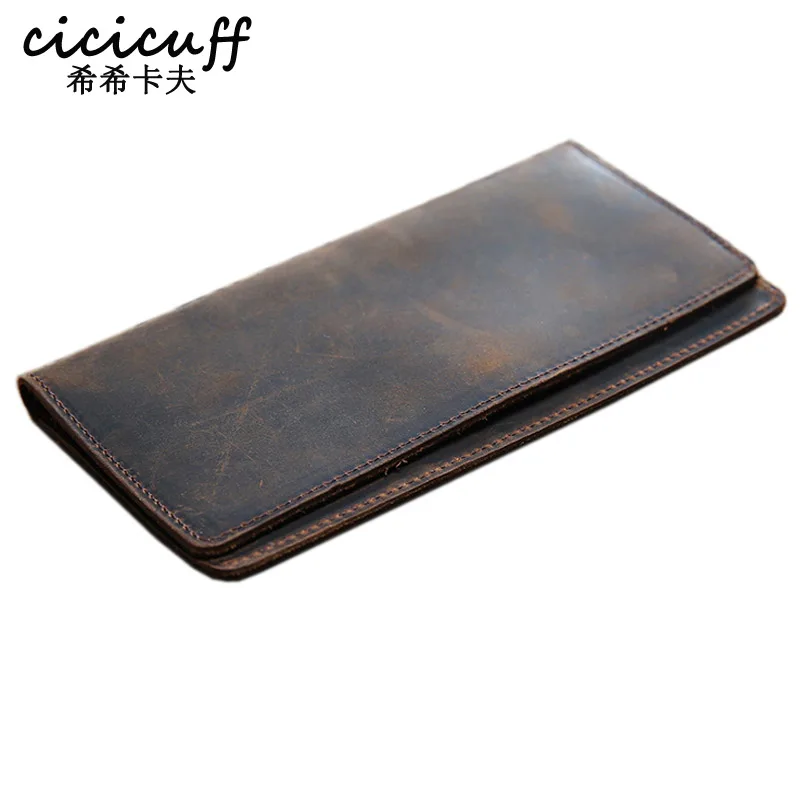 Тонкий Простой зажим для денег для мужчин Crazy Horse, держатели из натуральной кожи для чеков, винтажные кожаные длинные кошельки, тонкий бумажник