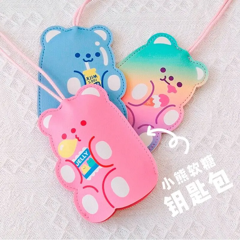 Сумка для ключей из искусственной кожи с медведем для девочек, кожаный чехол для ключей в Корейском стиле, Kawaii, мультяшный держатель для ключей, милый кошелек для монет для девочек
