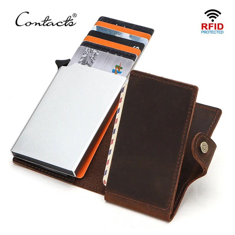 Контактная RFID Блокировка Crazy Horse кожаный мужской кошелек Кредитная Держатель для карт алюминиевая коробка для мужчин женщин автоматический всплывающий Чехол для карт