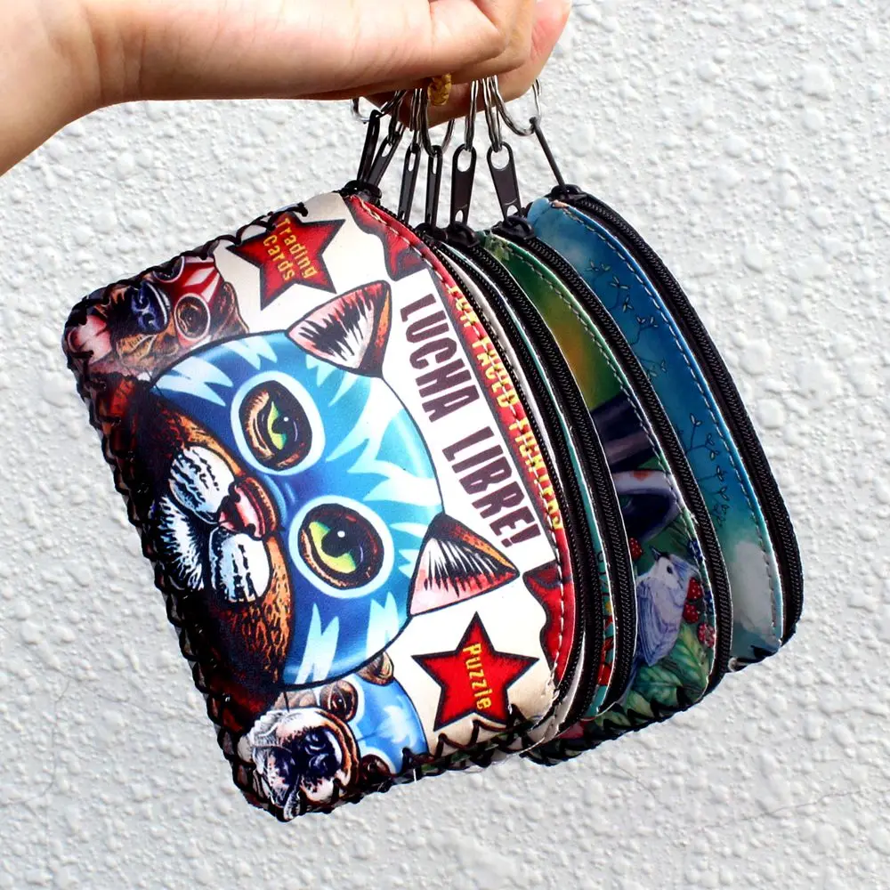 Винтажные Кошельки для монет, Женский кошелек на молнии с принтом, женский клатч, Женский мини кошелек для денег, сумка для девушек из искусственной кожи Carteira