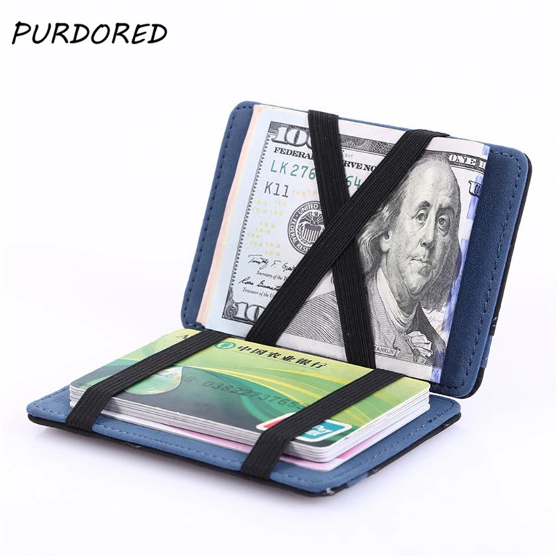 PURDORED 1 шт. Magic однотонный Футляр для карт для мужчин бизнес Card Case Бумажник из искусственной кожи Кошелек повседневное карманов дропшиппинг