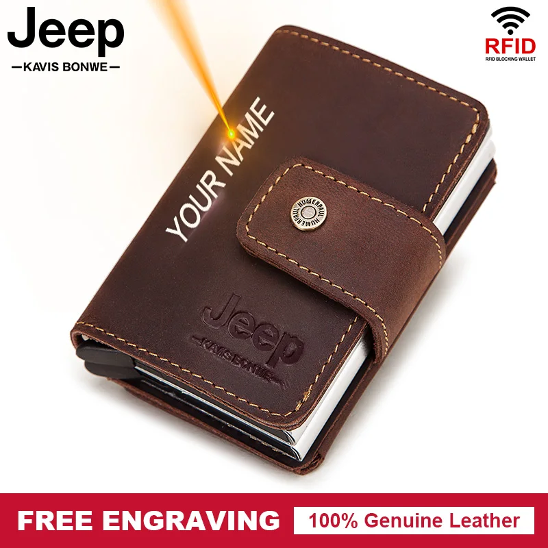 Rfid мужские кожаные держатели для кредитных карт, чехол для визитных карточек, мужской кошелек для монет, автоматическая блокировка, алюминиевый банк, кошельки для карт 2020
