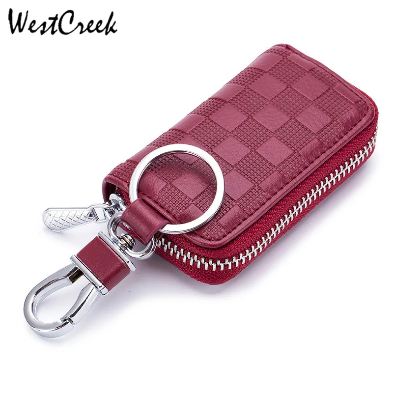 Новые кожаные автомобильные смарт-кошельки для ключей, клетчатый держатель для ключей, органайзер, чехол, унисекс, брелок на молнии, сумка д...