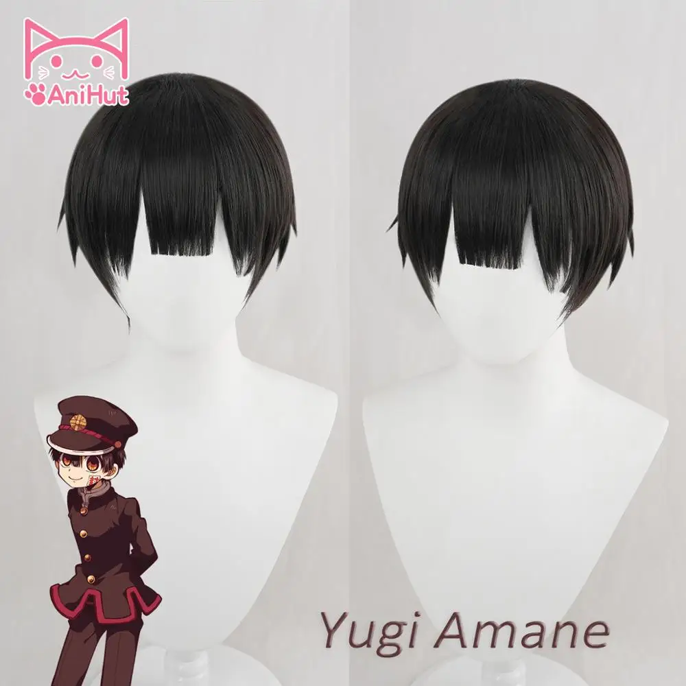 【AniHut】Yugi Amane парик для унитаза Hanako-kun косплей термостойкие синтетические черные волосы Yugi Amane