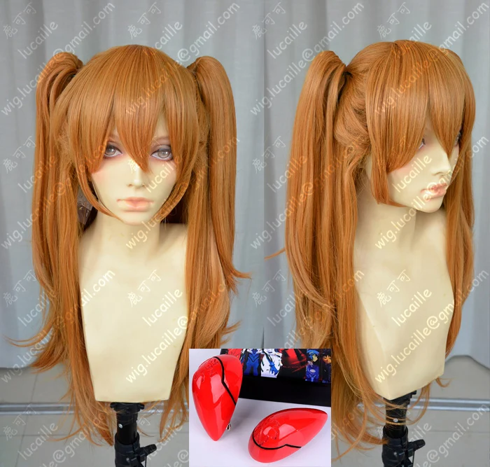 Аниме EVA костюм Аска ленґлі Сорю для костюмированных постановок длинный оранжевый с 2 зажимы для волос Жаростойкие накладные волосы Косплэй...
