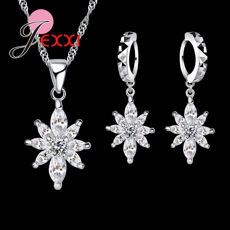 Jemmin 925 серебро оптом Beautfiful цветочный кристалл CZ блестящий Романтический Для женщин Ювелирные наборы Цепочки и ожерелья Длинные висячие сер...