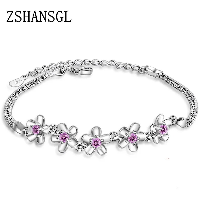 Женский браслет-цепочка с цветком Вишни из стерлингового серебра 925 пробы, с кристаллами CZ, подарок на день матери