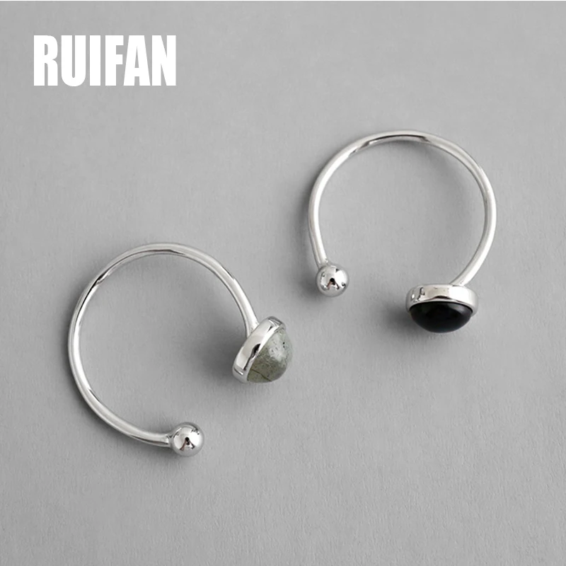 Женское кольцо с натуральным черным агатом Ruifan, серое кольцо с лунным камнем из стерлингового серебра 925 пробы, модные ювелирные изделия YRI152