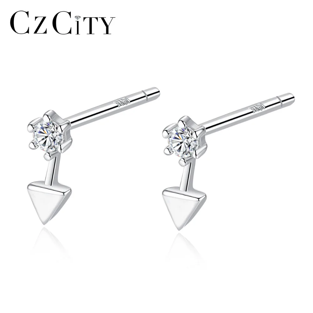 CZCITY 18K Позолоченные 925 пробы серебряные маленькие треугольные серьги-гвоздики для женщин прозрачные круглые CZ Femme ювелирные изделия рождественские подарки